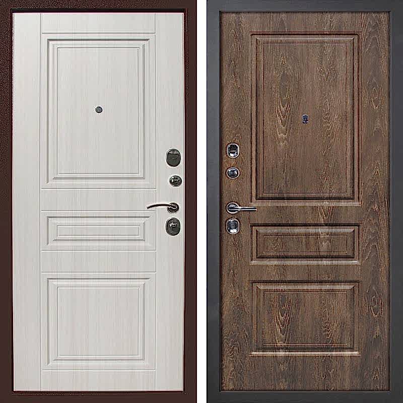 - Внутренняя панель входной двери выпускается с 2 видами мдф накладок толщиной 10 мм с влагостойким покрытием цвета сандал белый (белый, слегка серый тон) и темный Pin Up (темный тон);